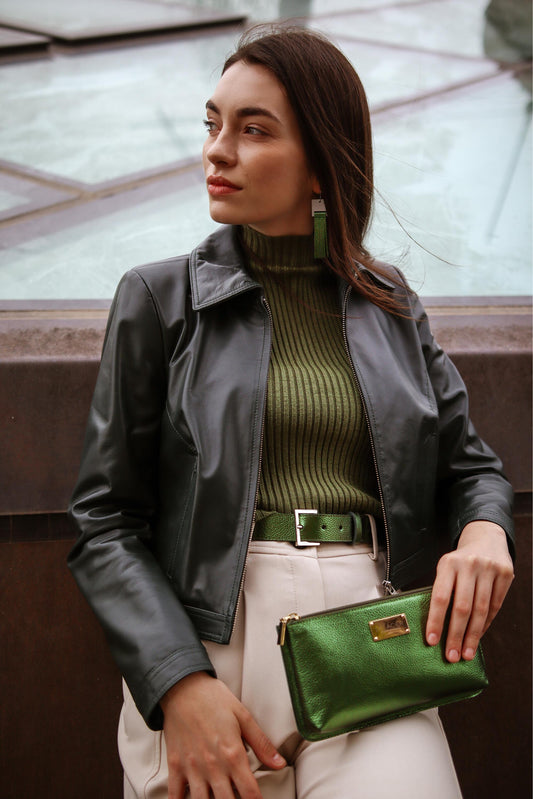 Mini fringe ▪ metál olajzöld ▪ fülbevaló